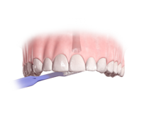 Børst implantatene med en tannbørste og vær nøye med renholdet i overgangen tann og tannkjøtt. Bruk gjerne en solobørste rundt tannkjøttkanten på implantatet. Mellomrommene rengjøres med enten mellomromsbørste eller tanntråd.
